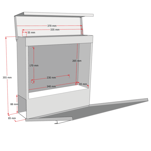Mõõtmed: 37,00 × 37,00 × 10,50 cm – praktiline suurus, mis mahutab nii kirjad, ajakirjad, ajalehed kui ka väiksemad pakid.