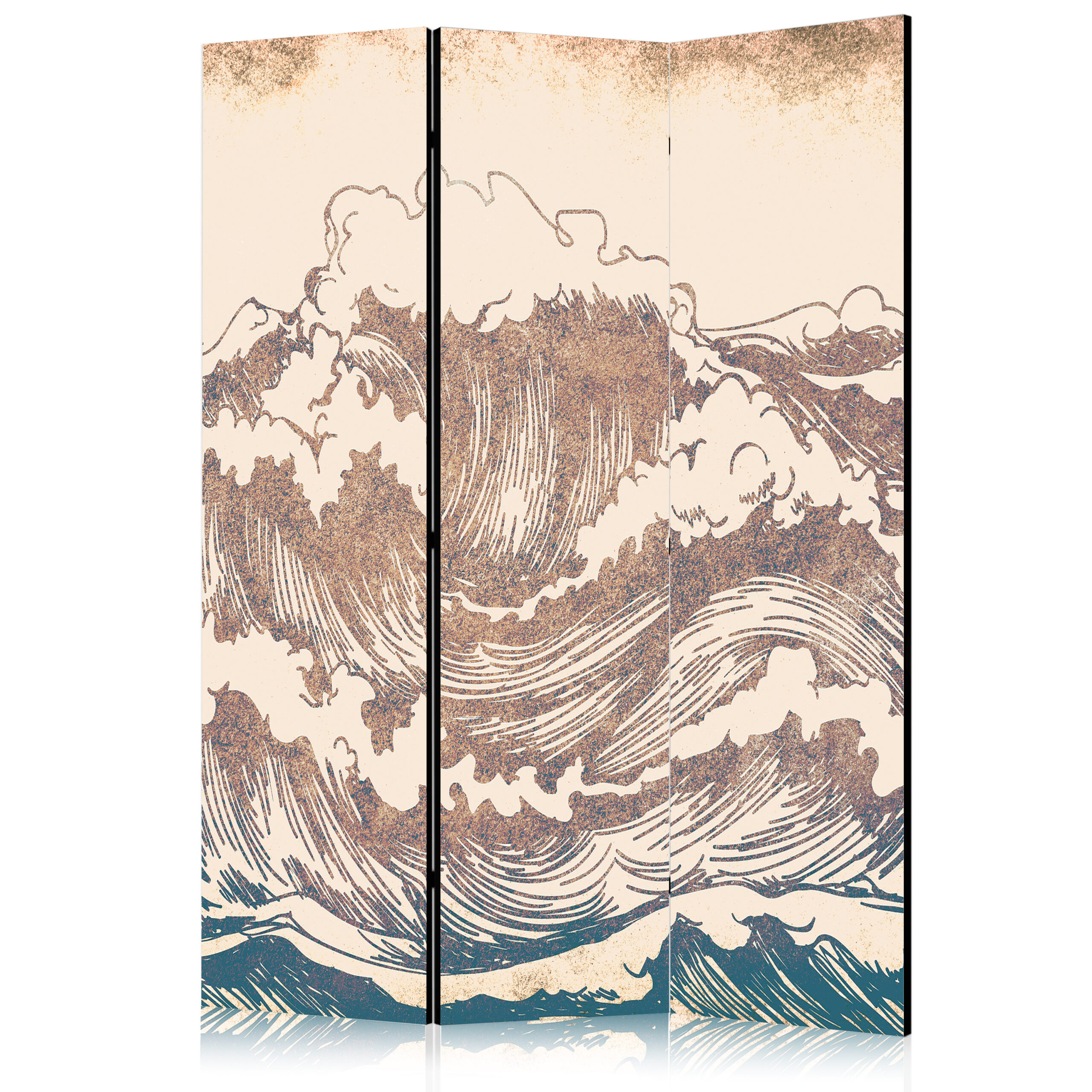 Ruumijagaja – Stormy Ocean – High Waves in Brown and Navy Colors on a Beige Background in Vintage Style