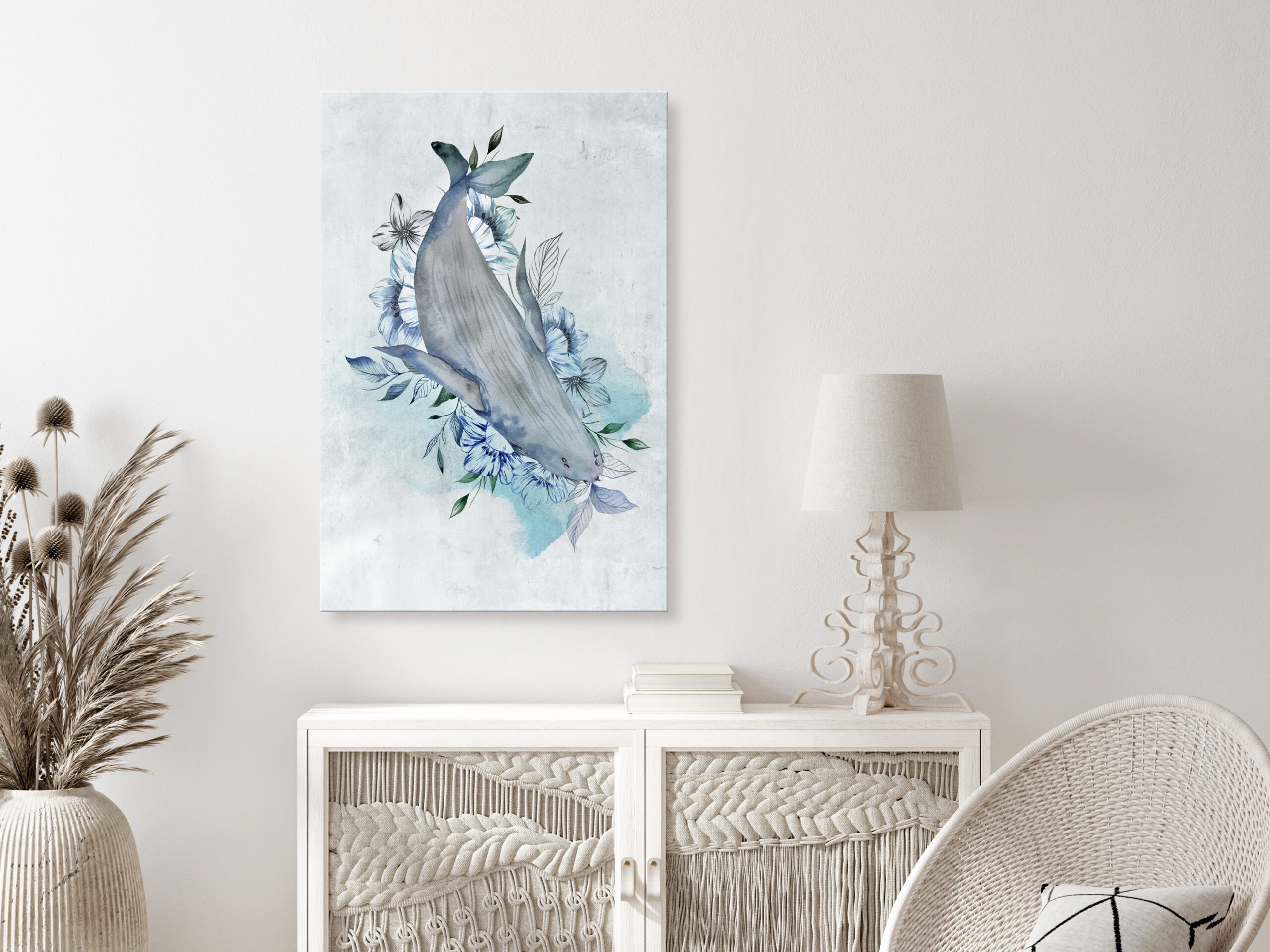 Seinapilt – Mrs. Whale (1 Part) Vertical on loodud rikastama teie elukeskkonda, lisades ruumile isikupära ja stiilset elegantsi. See ainulaadne sisustuselement on valmistatud kaasaegset digitaaltrüki tehnoloogiat kasutades, mis tagab pildile erakordse teravuse ja sügavad, küllastunud värvitoonid.